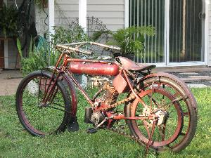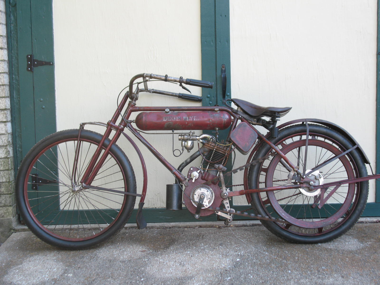 With the recent success of the Metz motorcycle, Charles Metz joined into a partnership with the Marsh brothers, one of the first of the numerous motorcycle manufacturers dotting America's Eastern Coast in the industry's early days. Located in Brockton, Massachusetts, the Marsh brothers built a motorized bicycle in 1899, with regular production of "motorbikes" commencing the following year. The merger between the two created the American Motor Company in Brockton. By 1913, their final year of production, The American Motor Company was selling their Marsh-Metz designed motorcycles through retailers and jobbers under the names National, M-M, Haverford, Peerless, Arrow and Dixie Flyer, each with a unique color scheme. It was in Brockton, MA in that last year of their production that this Dixie Flyer 4HP battery 'Special' was born.
